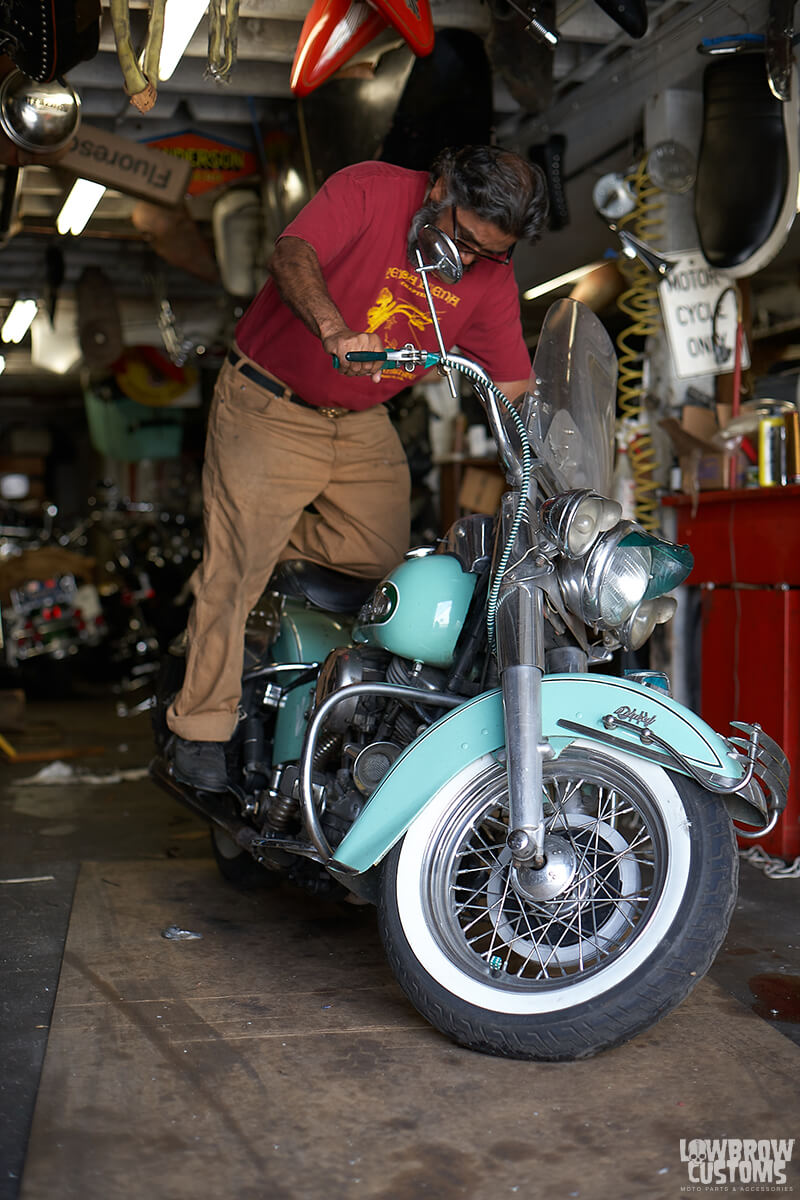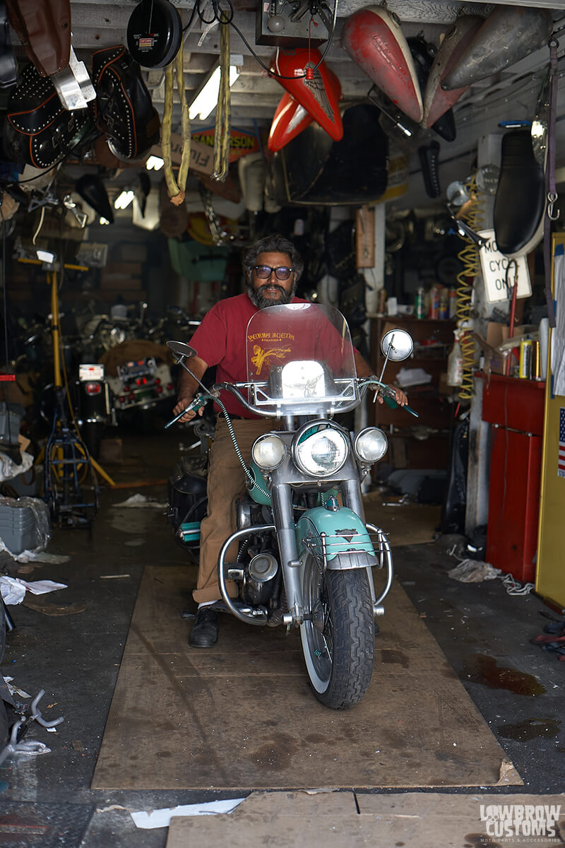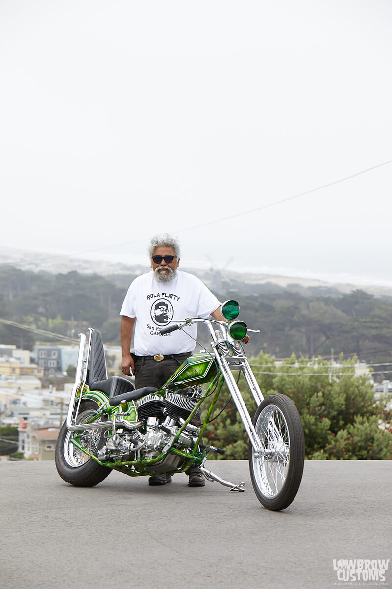 Born and raised in San Fransisco’s Mission District, Rick Najera lives and breathes vintage motorcycles. His first Harley was a 1946G trike that he got when he was 15, that was in 1972. Rick used it to commute back and forth to his high school on it when he lived in a RV behind a bar with his older brother who came back from Vietnam. As you can imagine, he grew up watching choppers buzzing through the mission district.