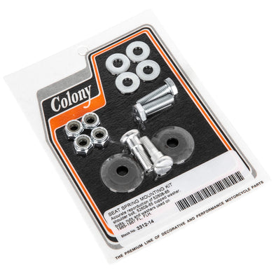 Seat spring mounts are necessary to support the springs found at the back of a motorcycle solo seat. The solo seat pivot at the front of the rigid chopper seat allows it to bounce on the springs, adding some suspension to rigid-framed bobbers, choppers and vintage motorcycles. Sprung solo seats can also be found on bikes with a swingarm such as Harley Sportsters, Shovelheads and Softails. Lowbrow offers a variety of well-engineered, quality options for many different style bikes. Seat spring mounts are available in both bolt-on and weld-on versions and several finishes including raw mild steel (for those that need to be welded), black and chrome plated. Typically a simple cotter pin holds the spring in place on the perch. Some people like bolting the springs both top and bottom, which is only a problem if you need to flip your seat up and down to check the oil level. Typically, the weight of the rider holds the seat down and even a cotter pin isn't necessary. Interesting factoid: weld-on solo seat spring mounts were the very first Lowbrow Customs brand part, and we are still selling them strong more than a decade later!