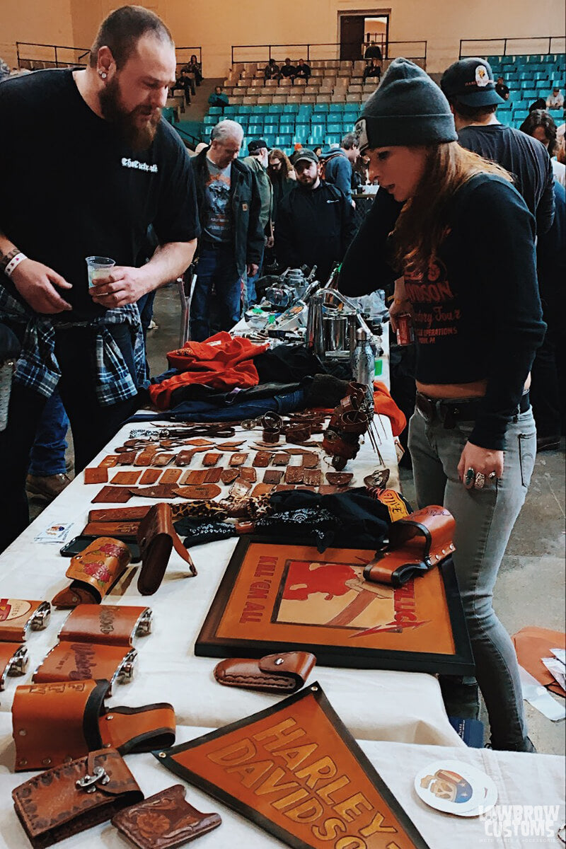 View of the swap. From rare OEM parts, to the "in" chopper parts- you'll find it all in between the handmade artwork, vintage knick-knacks and people wearing flannel.