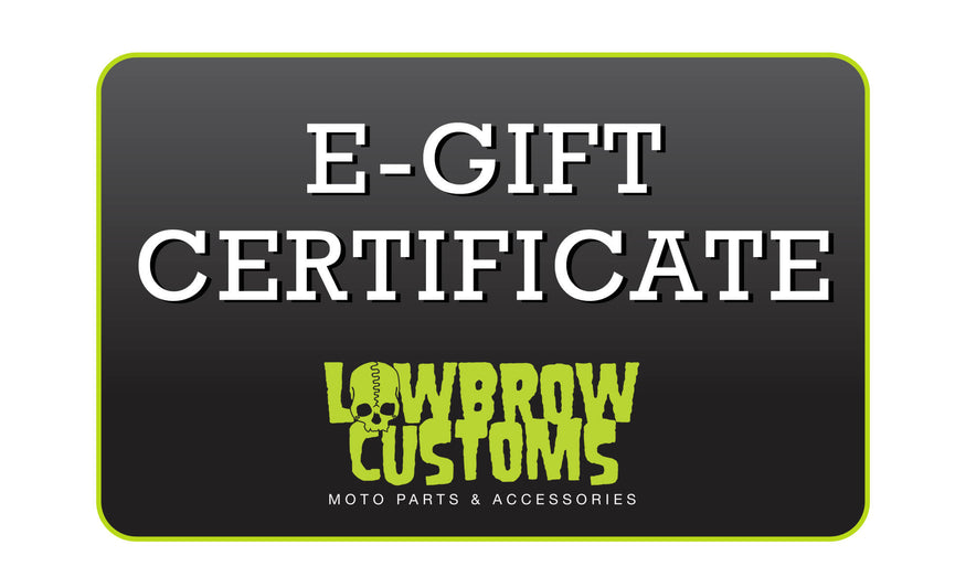 Here at Lowbrow we have motorcycle parts, riding gear and clothing for those with Harley-Davidsons, Triumphs, Hondas, and every other type of bike will absolutely love! And, if you are in a rush, a Lowbrow Customs E-Gift Card can solve your dilemma, as it is delivered to your inbox immediately upon checking out.