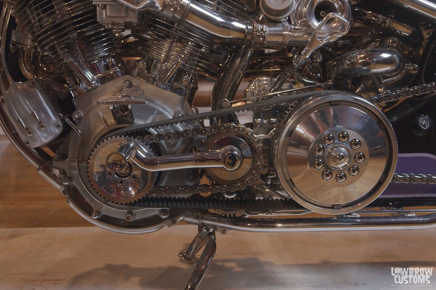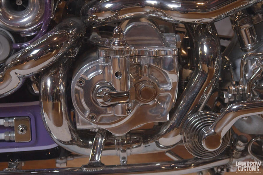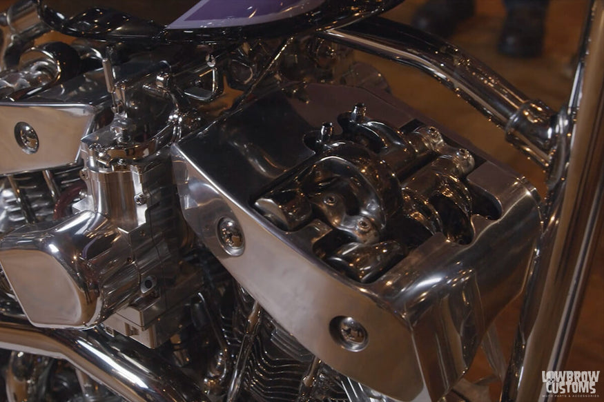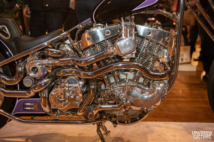 First up, from the wild mind of Christian Newman comes this incredible, out of this world Born Free 12 winning custom motorcycle build. He's calling it a 1939 Harley-Davidson ULH, but its far from it. This twin turbo 8 valve motor is housed by some 39 ULH cases, Knucklehead fly wheels, custom connecting rods, Evo pistons, Panhead cylinders, and from the head gasket up a completely custom open rocker head set up. WTF. And thats only the beginning of the madness. Everything is polished stainless, offset transmission, custom springer front end that looks like a girder, and so much more. Really just a mind blowing machine.