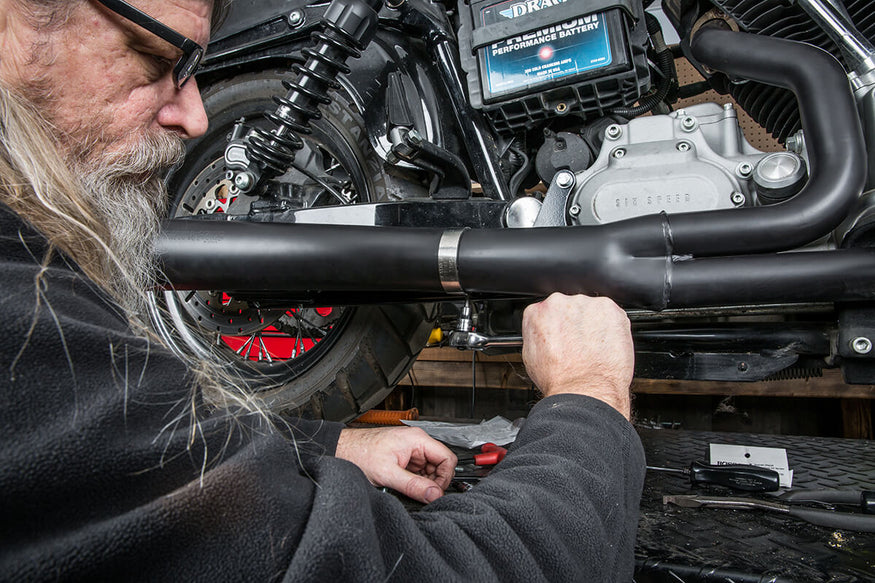 Lowbrow Customs has teamed up with Kerker to bring you an affordable, USA-made, high-performance, 2 into 1 SuperMeg exhaust system for your Harley-Davidson. Our goal was to create an exhaust system we would want to run on our bikes, stripped of all the superfluous covers and branding. Though install is super easy on these and should only take a couple hours to get back on the road we thought it would be a good idea to have Todd walk you through 9 quick steps on getting this motorcycle exhaust system installed onto your bike with ease, in this super detail walk through for installing Supermeg exhaust for Hayley Dyna.