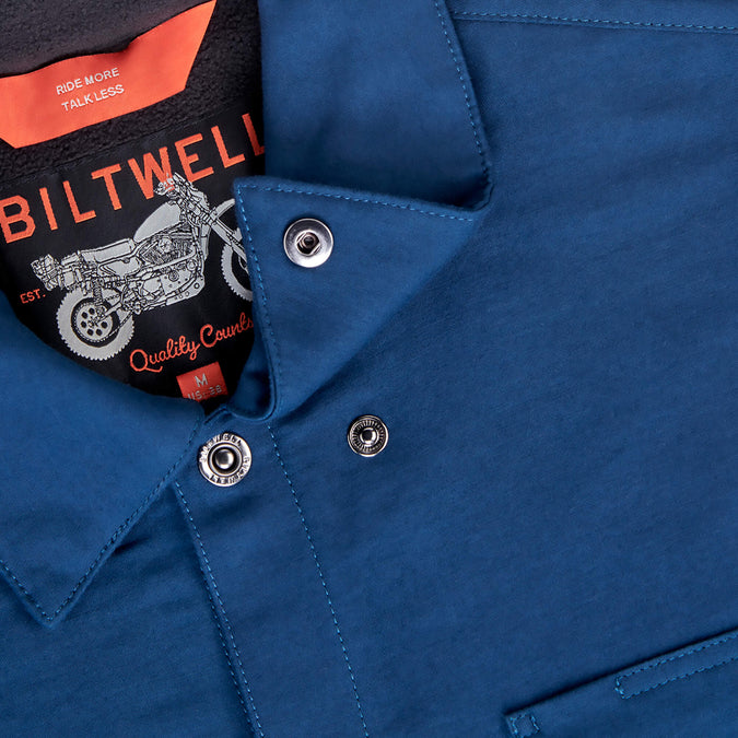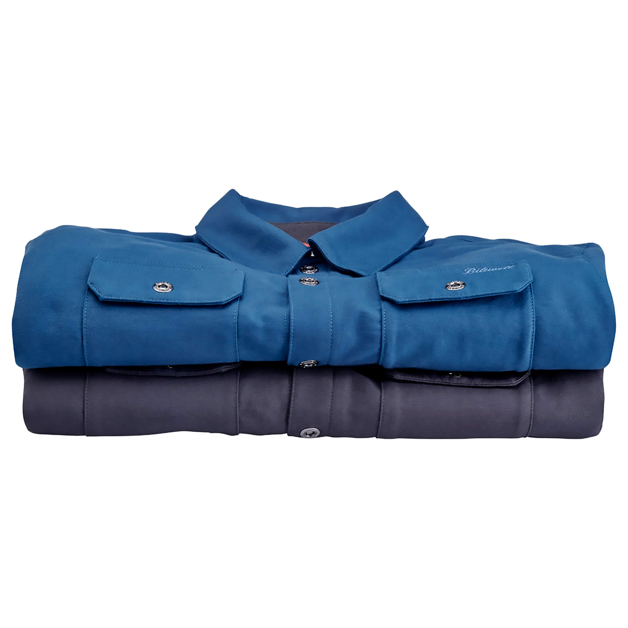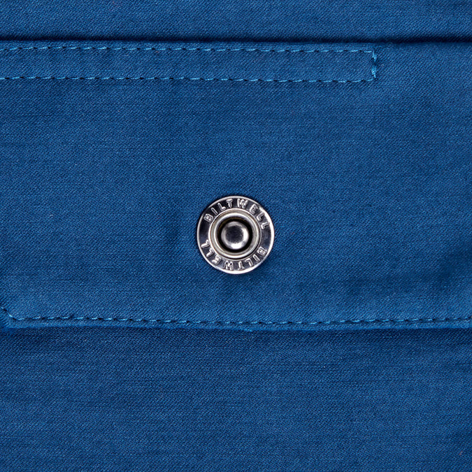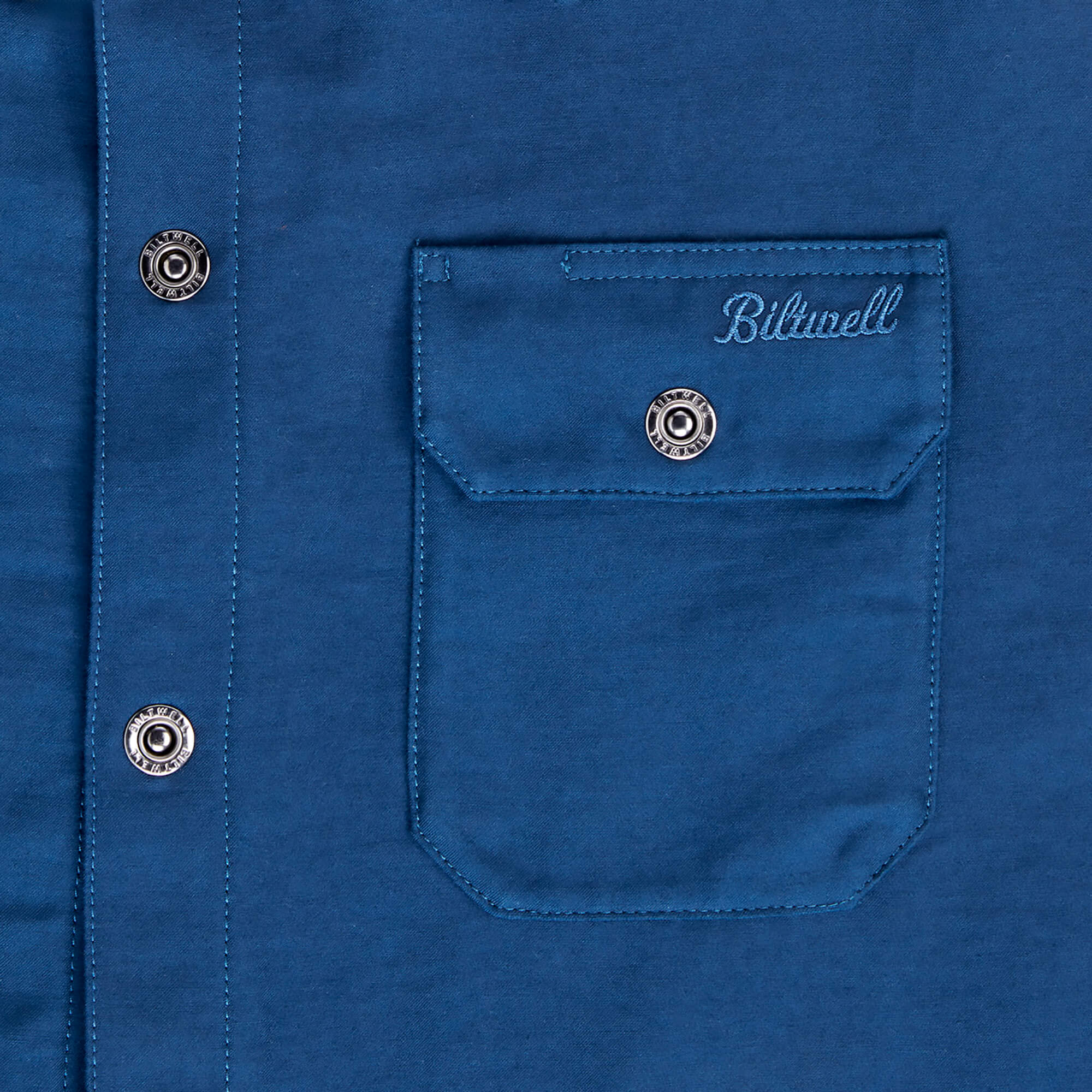 - Heavy-duty nickel-plated ring snaps on placket, cuffs, collar, and pocket flaps