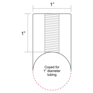 These threaded, coped steel bungs are 1" diameter and are drilled and tapped all the way through with 3/8"-16 thread. These larger diameter bungs are great if you want them to match up to the same diameter as your 1" frame tubing, and give a larger surface area to mount against for more stability. Coped for a perfect fit on 1" tubing, tack in place then weld it up, mounts are finished in minutes. These give 1" of rise, measured from the top of the coped radius to the flat end. They are 1018 cold rolled steel for easy welding and are great for mounts of all sorts. Sold in Pairs. Made in Ohio, USA.
