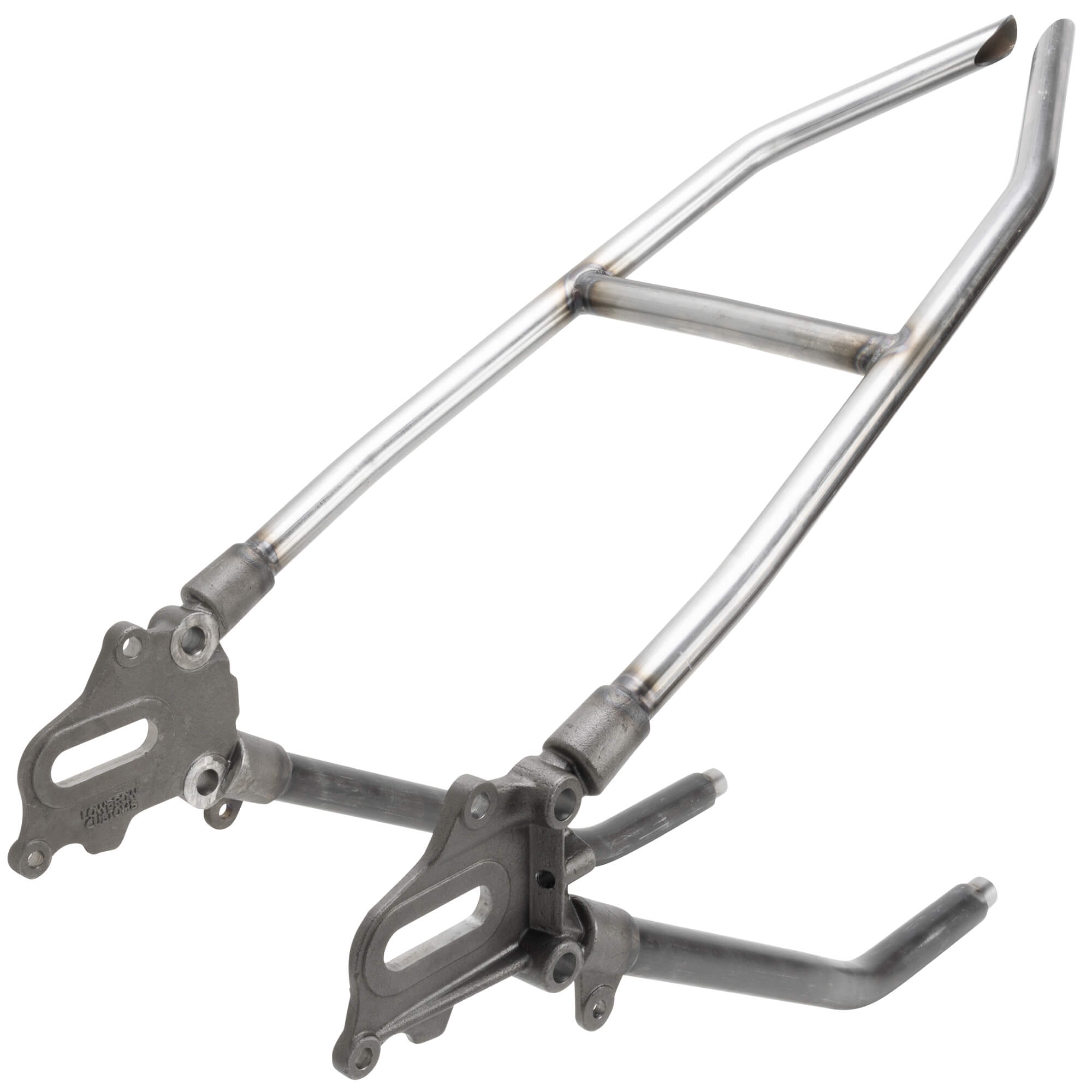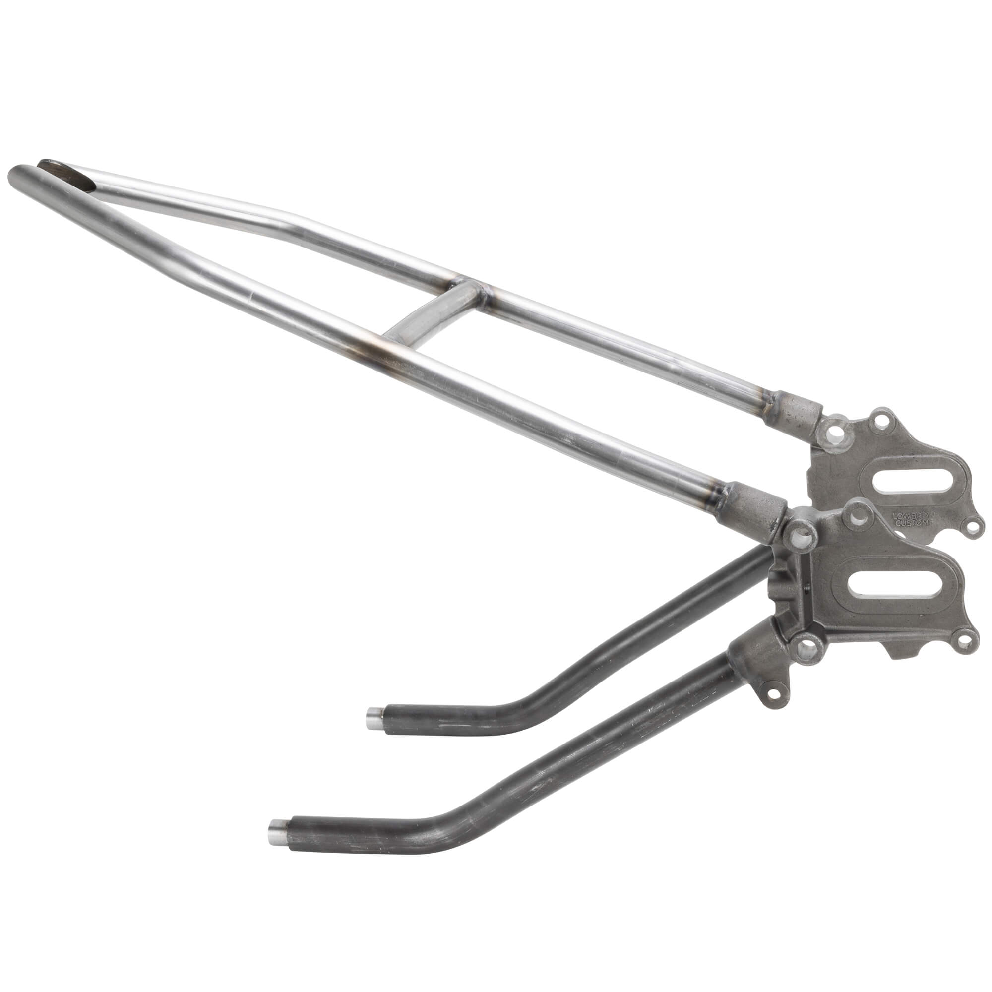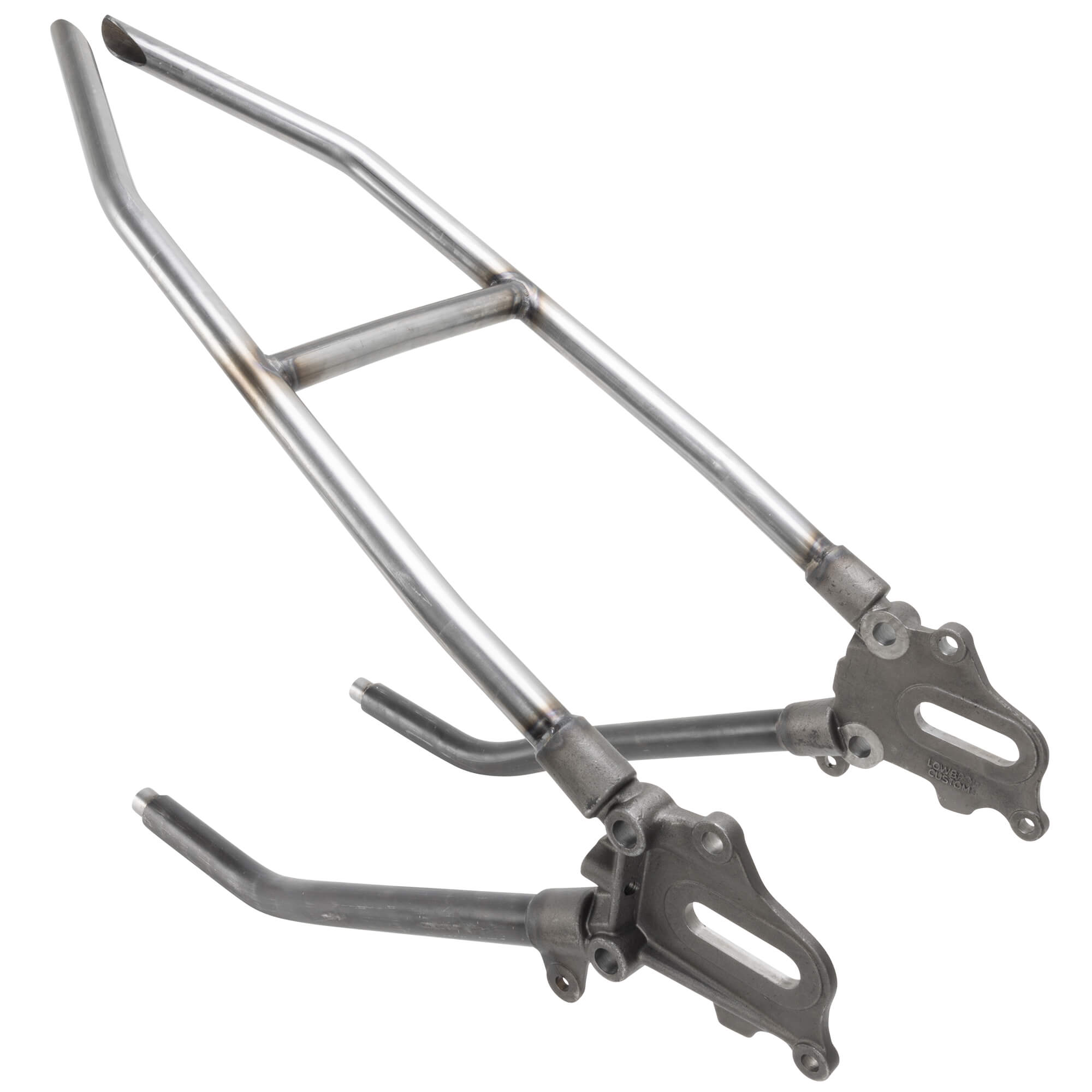 This weld-on hardtail rear frame section from Lowbrow Customs is an absolute perfect fit on 1958-1984 Harley Big Twin swingarm frames (stock front frame section not included). This weld-on rear frame section converts your Shovelhead or Panhead swingarm frame into a rigid rear end with cast steel lugged axle plates for use with a 3/4" axle and disc rear brake.