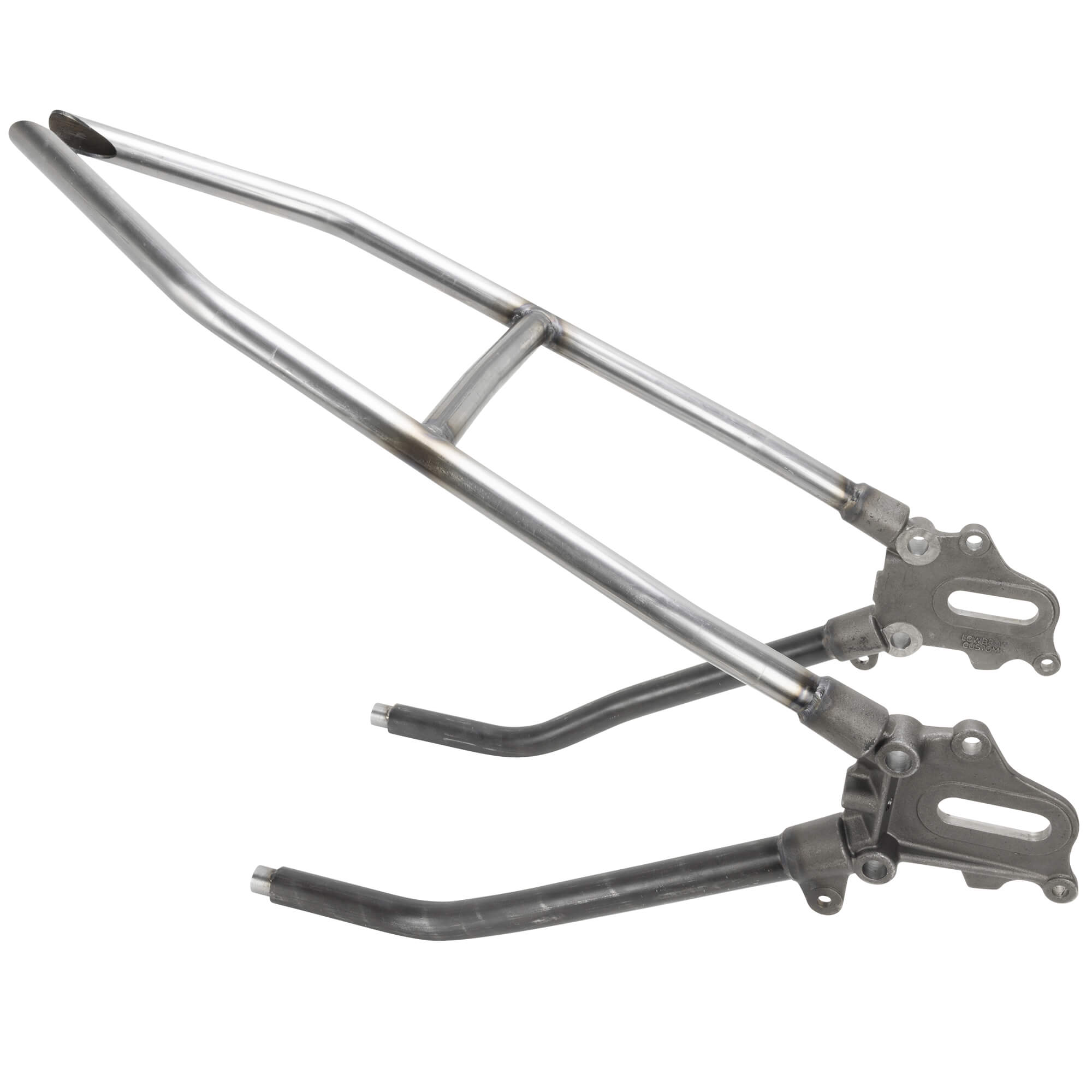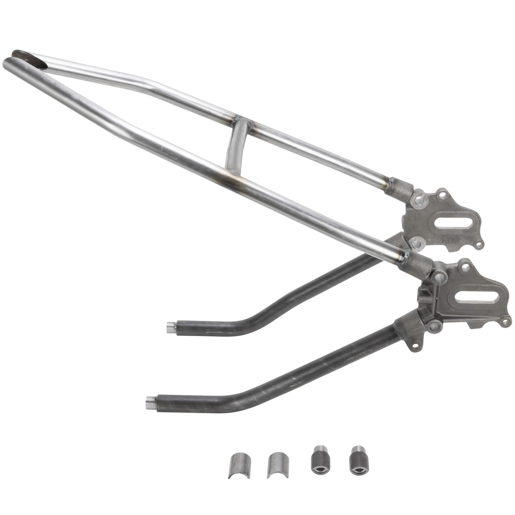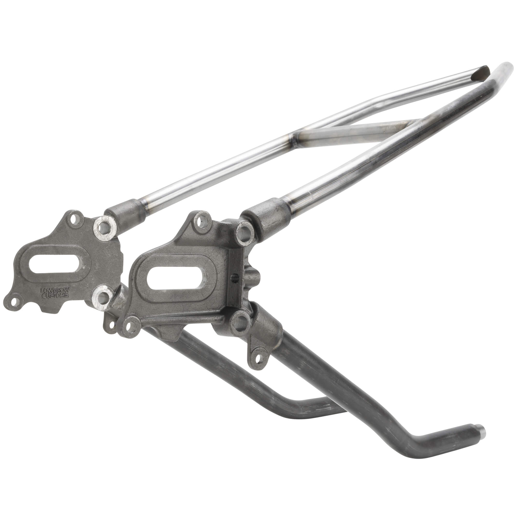 This weld-on hardtail rear frame section from Lowbrow Customs is an absolute perfect fit on 1958-1984 Harley Big Twin swingarm frames (stock front frame section not included). This weld-on rear frame section converts your Shovelhead or Panhead swingarm frame into a rigid rear end with cast steel lugged axle plates for use with a 3/4" axle and disc rear brake.